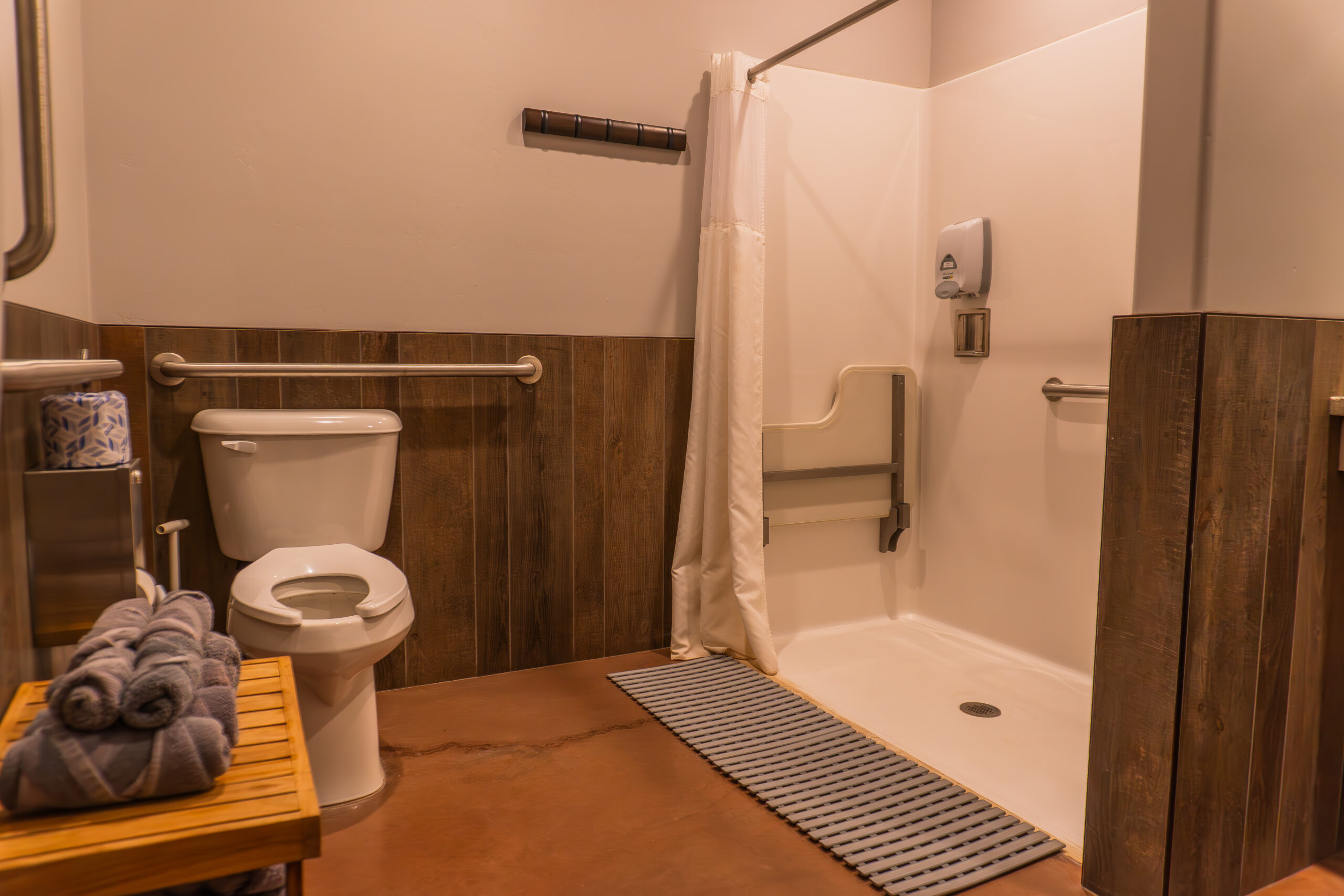 Love the idea of the Glamping Cabins, but need a bit more space? Our Glamping Lofts are the perfect choice! Our lofts come equipped with everything included in our Glamping Cabins with the addition of two twin beds in a loft area up a ladder. If you'd prefer a single level and wheelchair accessible cabin right next to the wheelchair accessible bathrooms, our Glamping ADA Cabin (G5) has a slightly larger single level layout with set of bunkbeds instead of a loft.