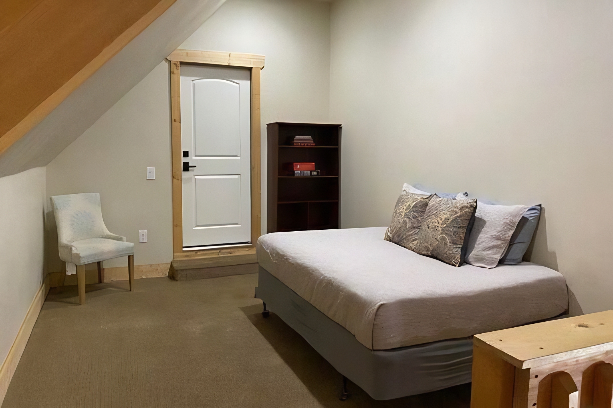 Lakeside Luxury Loft apartment is a self-contained apartment with a queen bed, child-sized bed, sofa, TV, full kitchen and a bathroom in a well decorated open floor plan that can also adjoin the Luxury Lodge through a connecting door. The separate outside entrance allows it to be rented independent of the Lodge as well. Stay in comfort with access to WiFi, Roku TV, heat, A/C, a fully equipped kitchen at close proximity to all lakeside activities.